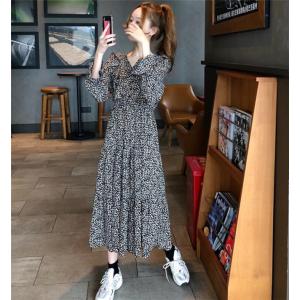 シフォンワンピース ロング丈 春ワンピ レディース 花柄 大人可愛い レトロ 長袖 リボン Vネック Aライン Ab1167 Valentina210